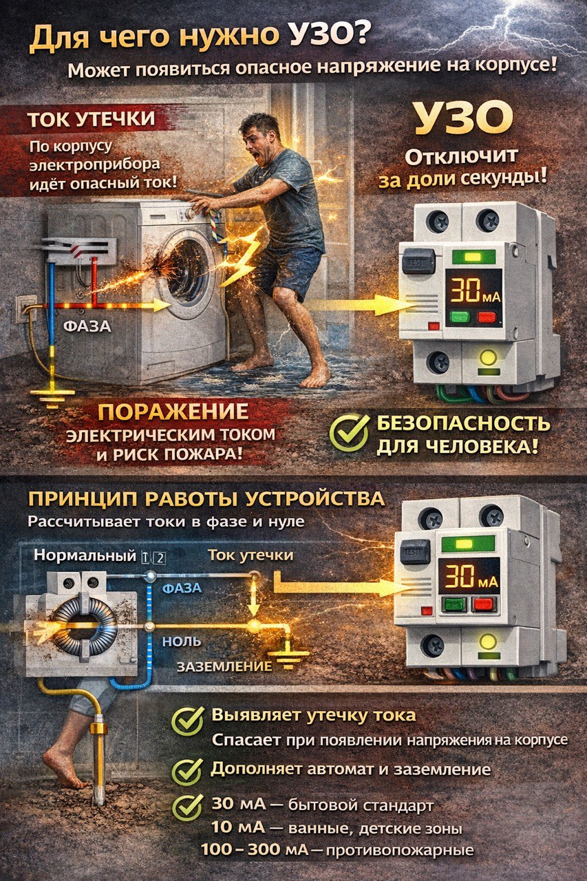 Таким образом, применение УЗО является не формальным требованием, а технически обоснованной мерой, существенно повышающей безопасность эксплуатации электроустановок.